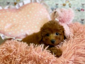 まん丸でまるでくまさん❤濃いレッド★ 人懐っこくお利口さん♪マズルが短い美人さんです★ うるうるな瞳で見つめられるとたまりません★ タイニー~小ぶりトイサイズ予測